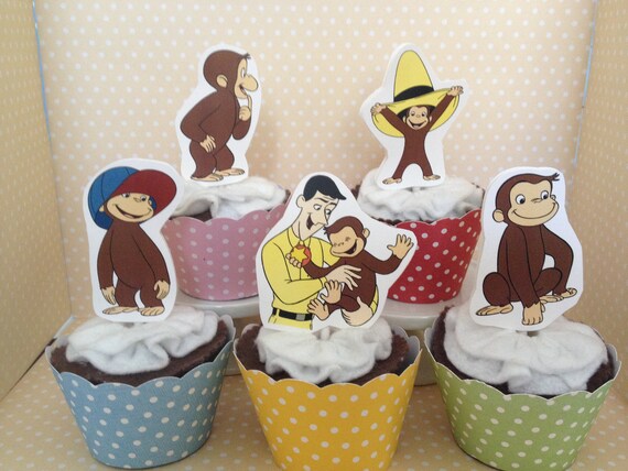 Curious George Party Cupcake Topper Decorations Set Of 10 Etsy