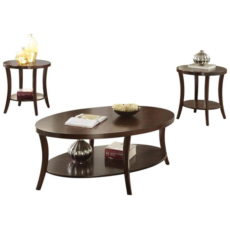 Oval Espresso Coffee And End Table Set Occasional Tables
