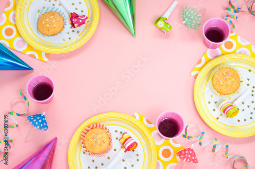 Girl Birthday Decorations Table Setting From Above With Cakes
