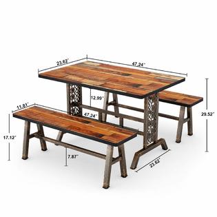 Rustic Tribesigns Dining Table With Two Benches 47 2 L X 23 6 W