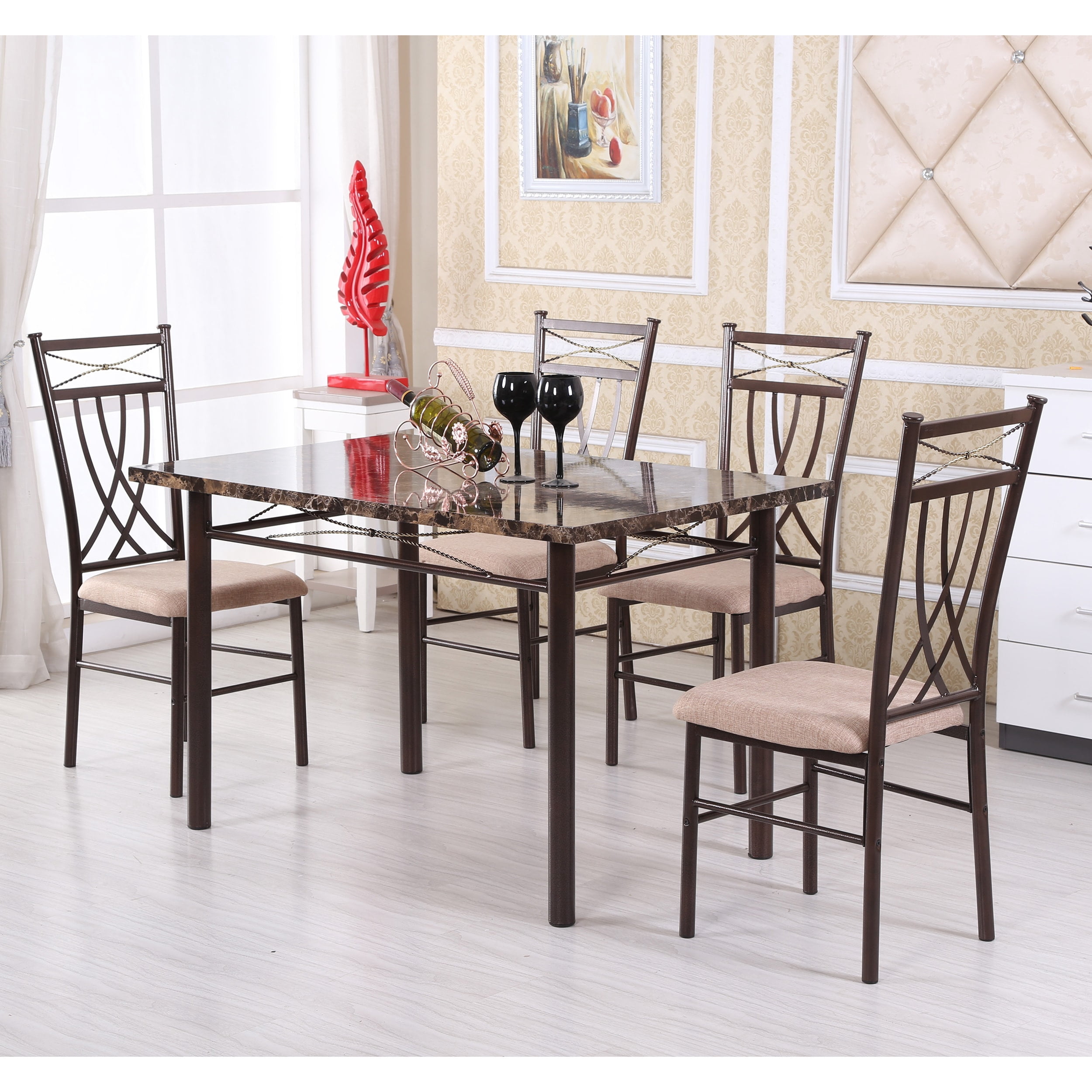 Hodedah Imports 5 Piece Dining Table Set Walmart Com Walmart Com