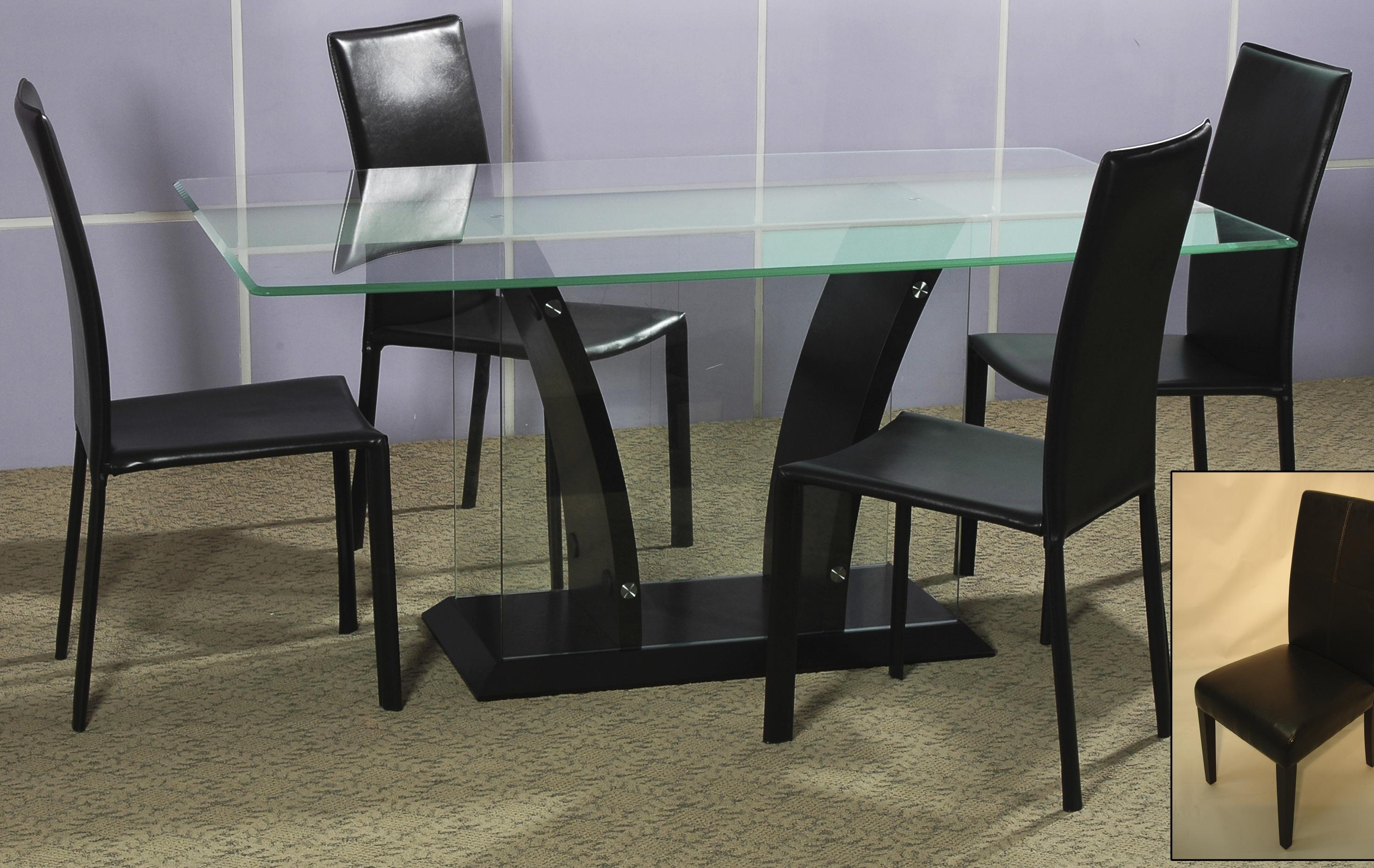 5 Piece Dining Table Set W Glass Top Leather Chairs Black