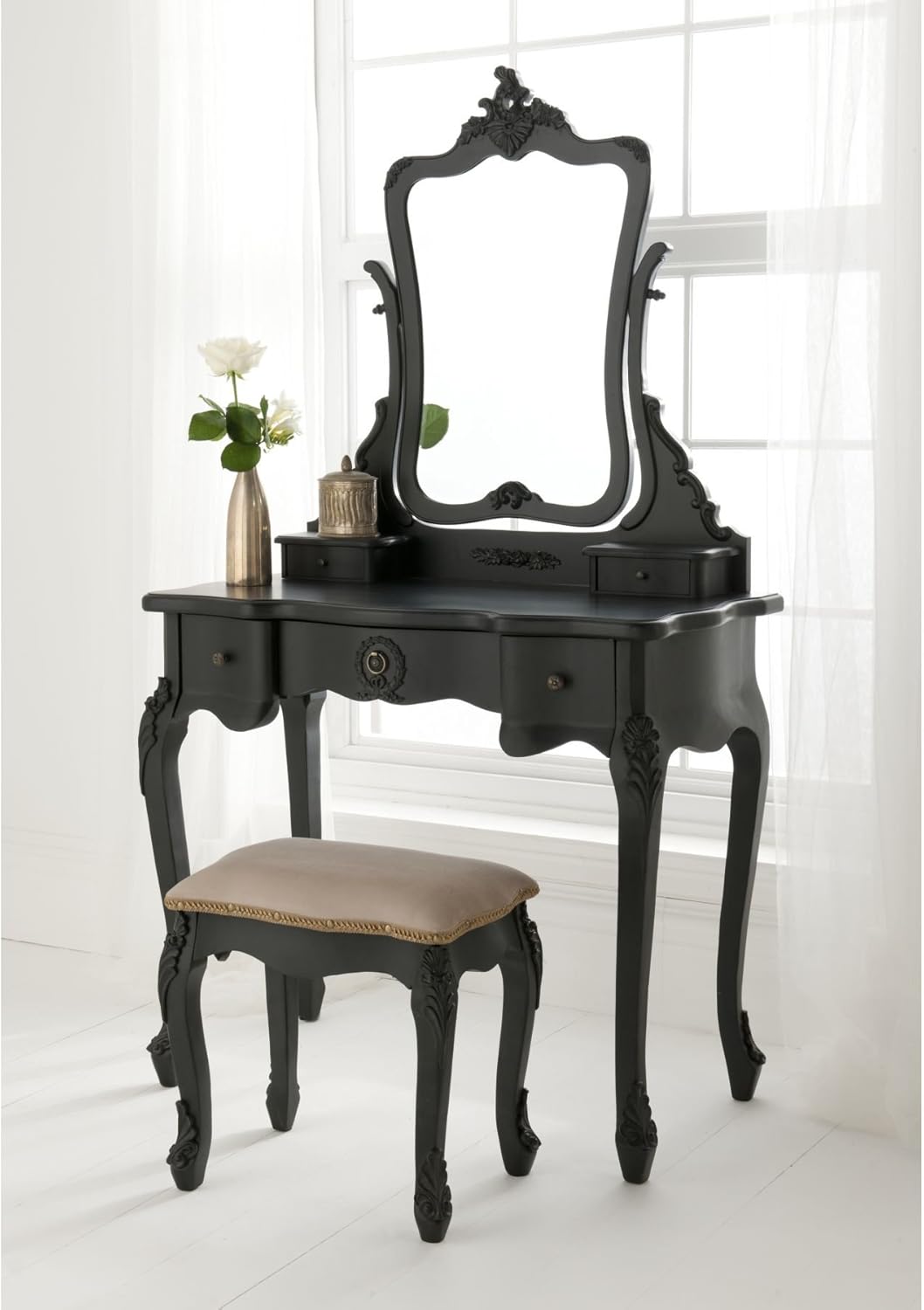 Homesdirect365 Black Antique French Style Dressing Table Set
