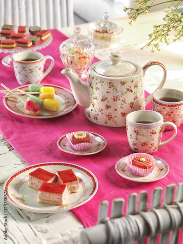 Pink And Purple Birthday Party Table Setting Stock Image Image