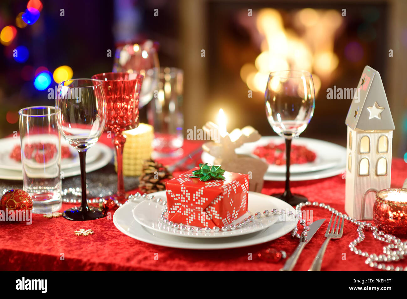 Stylish Table Setting With Christmas Decorations Stock Photo