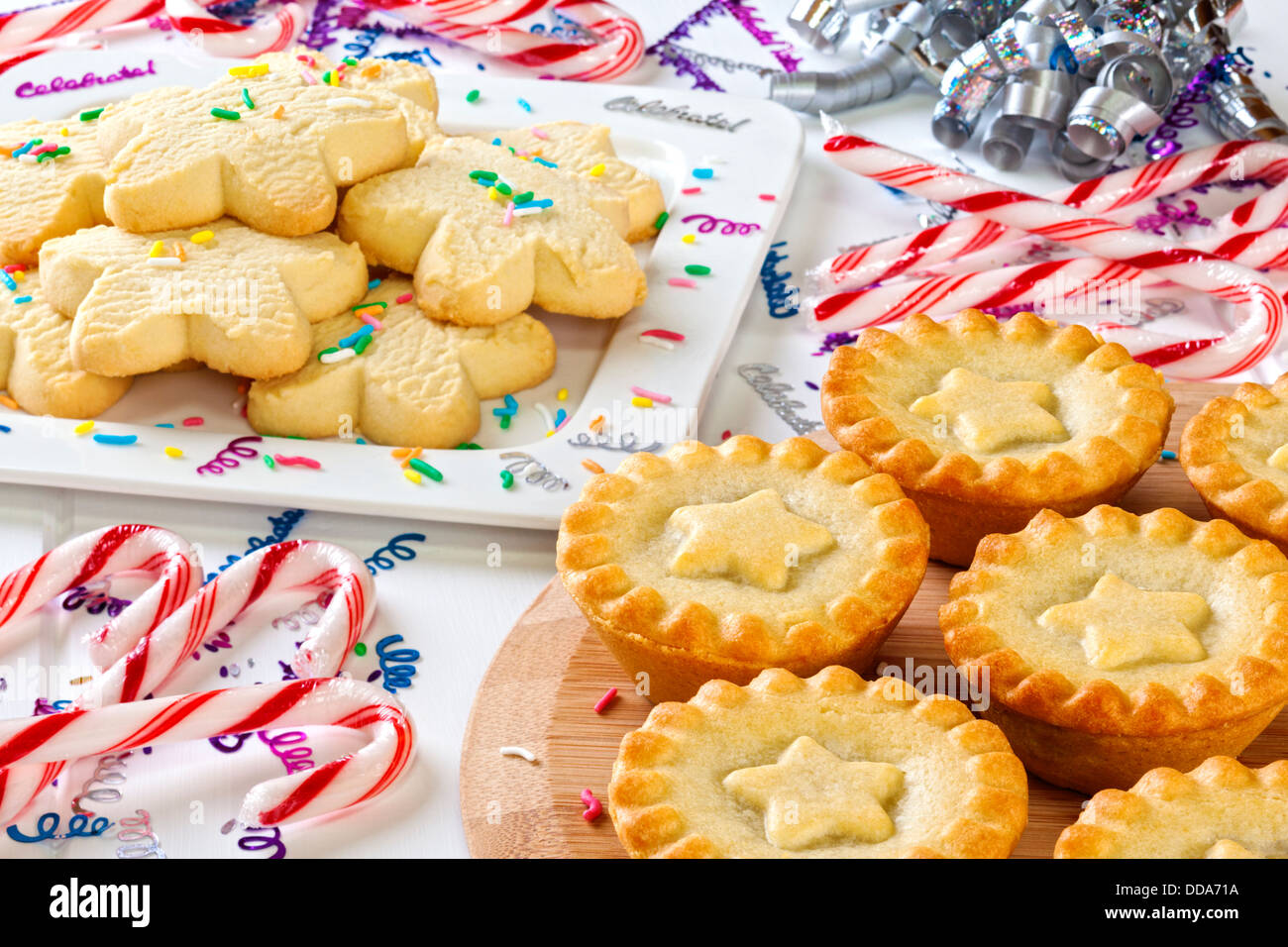 A Buffet Table Set Up For A Celebration With Christmas Fruit