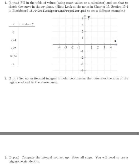 Solved 1 3 Pts Fill In The Table Of Values Using Exa