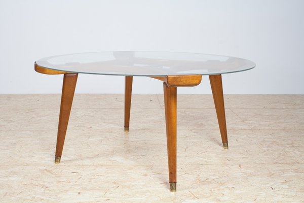 Oak And Glass Round Coffee Table By William Watting For Fristho