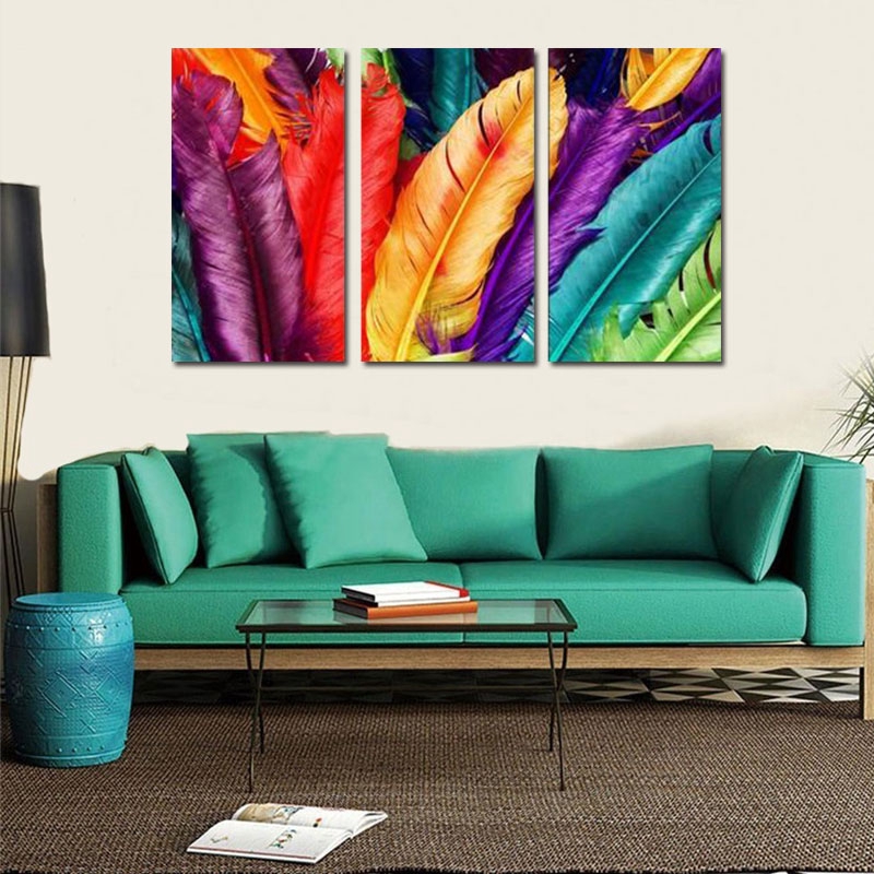 3 Pieces Colorful Feathers Canvas Painting Wall Art Pictures For
