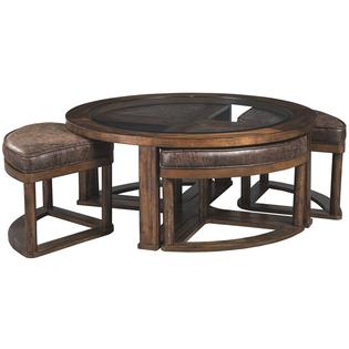 Ashley Hannery 5 Piece Glass Top Accent Coffee Table Set In Brown