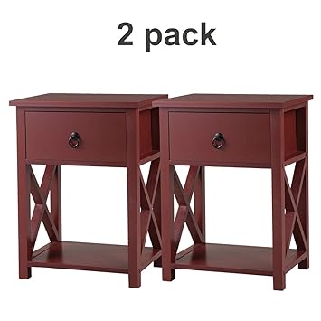 Amazon Com Jaxpety Set Of 2 Brown Bedside Table Nightstand With 1