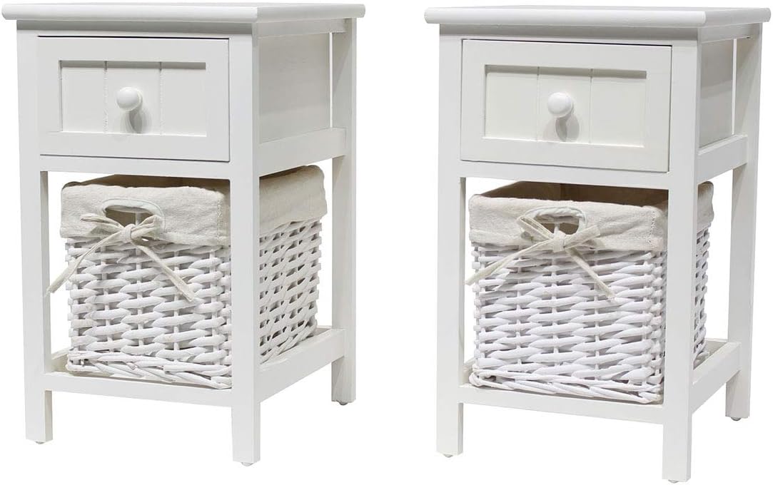 Hironpal Bedside Table Set Of 2 White Shabby Chic Nightstand