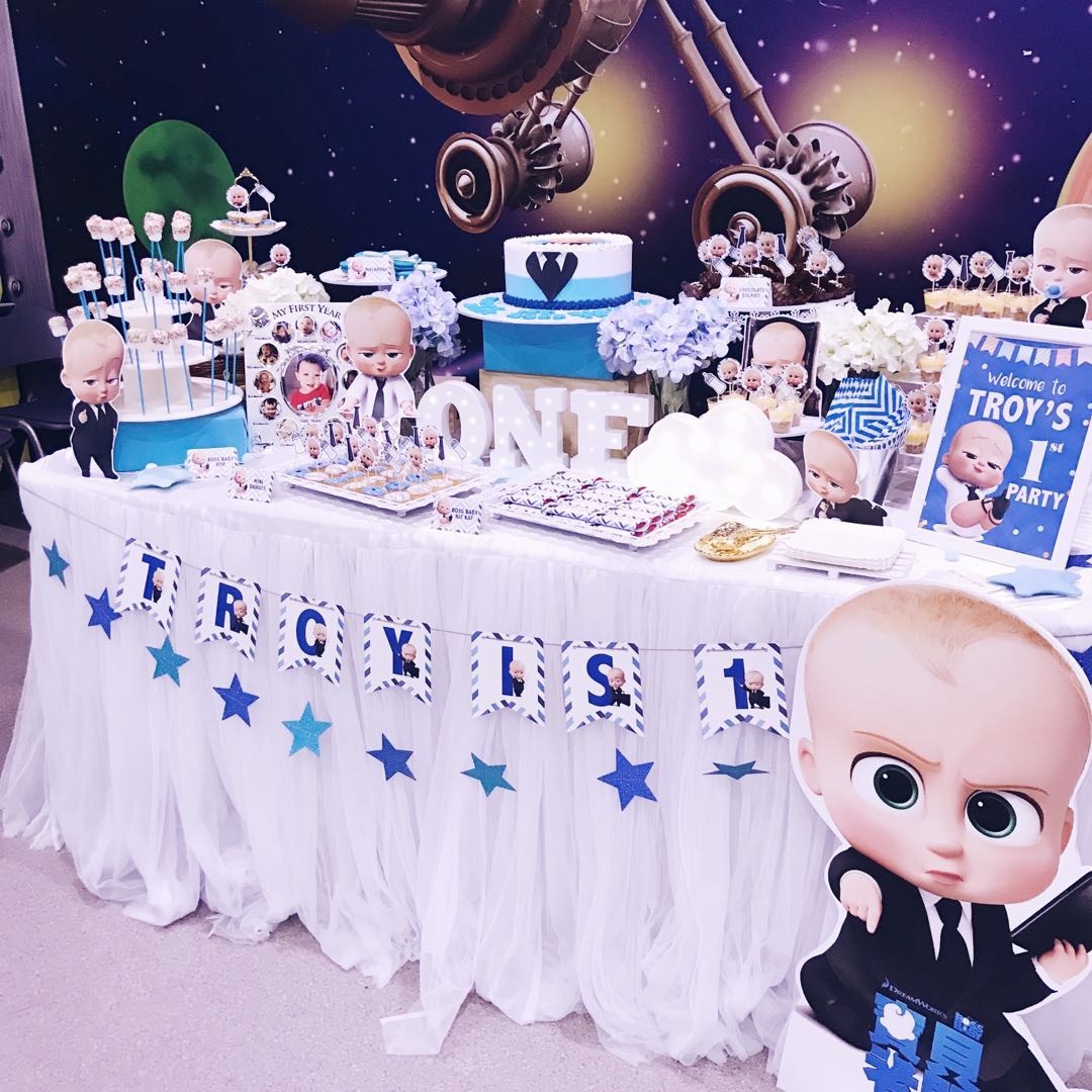 Baby Boss Theme Dessert Table Setup Food Drinks Baked Goods On