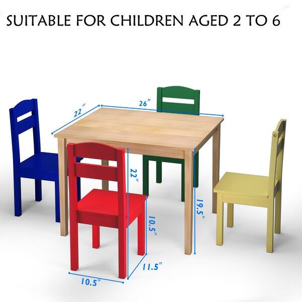 5 Pcs Kids Pine Wood Table Chair Set Desk Chairs Children Table