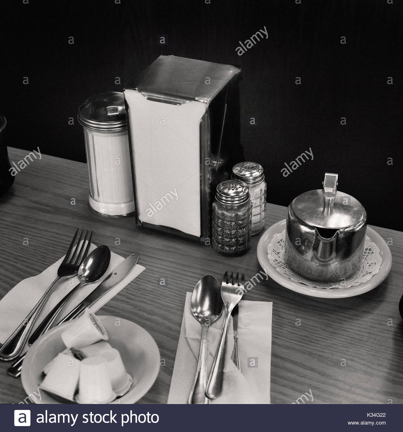 Coffee Shop Table With Place Settings Stock Photo 156837690 Alamy