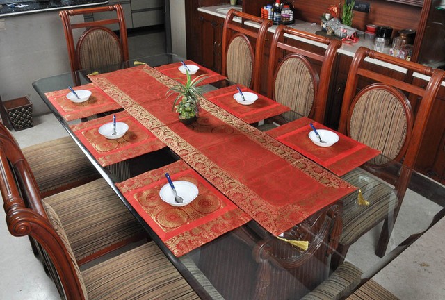 Decorative Silk Kitchen Dining Table Runner Mats Set Of 7 Pieces