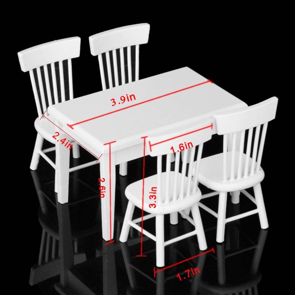 Miniature Furniture 5pcs Kids White Dining Table Chair Model Set 1
