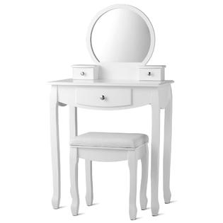 Costway 4 Drawer Makeup Vanity Table Set W Oval Mirror Girls