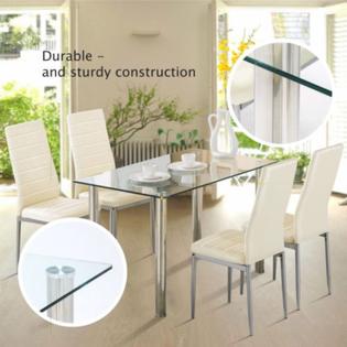 5 Piece Glass Dining Table Set 4 Chairs Room Kitchen Breakfast